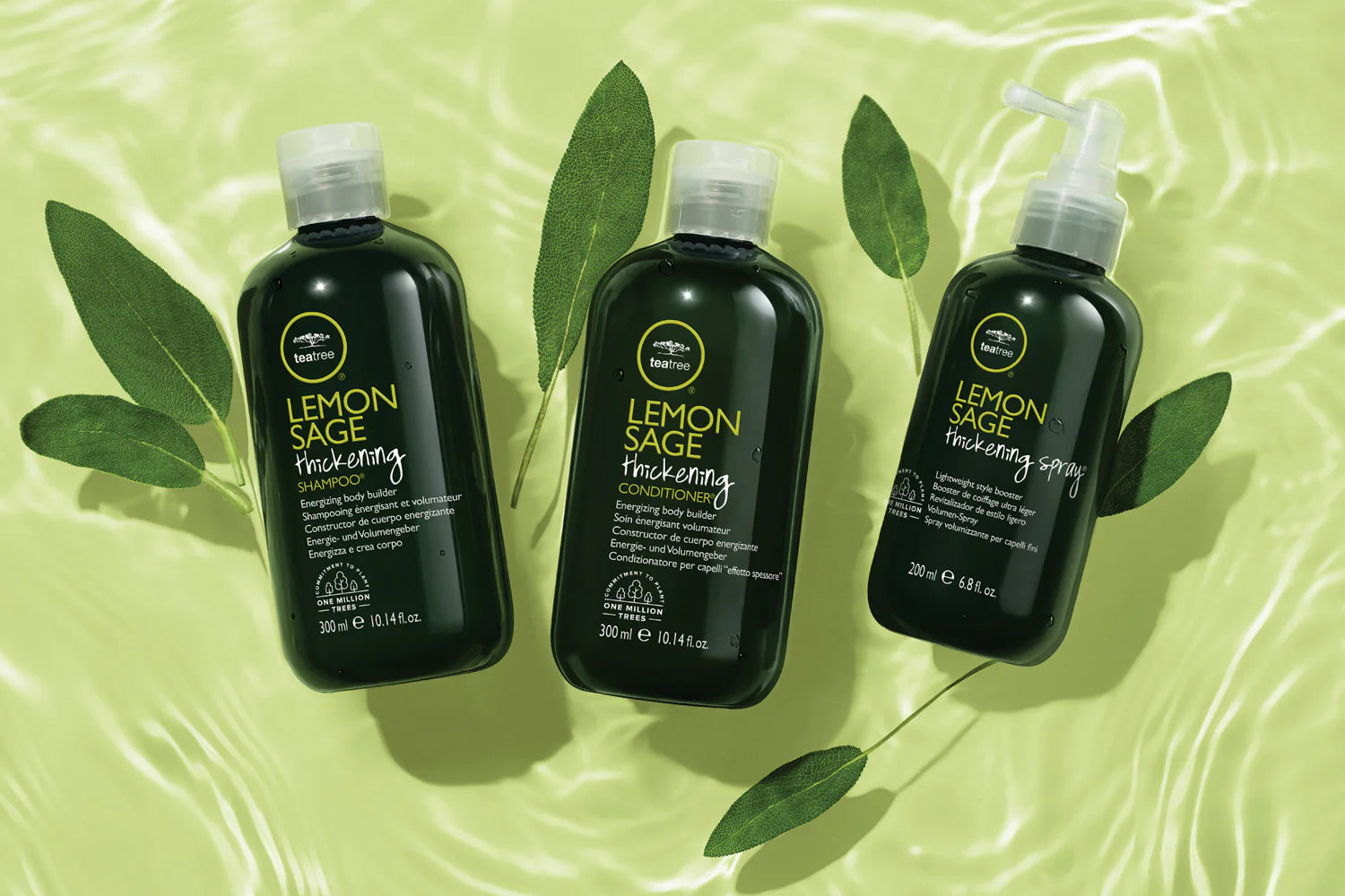 Thickening conditioner with uplifting lemon, sage and tea tree conditions, detangles and adds volume to fine hair.
