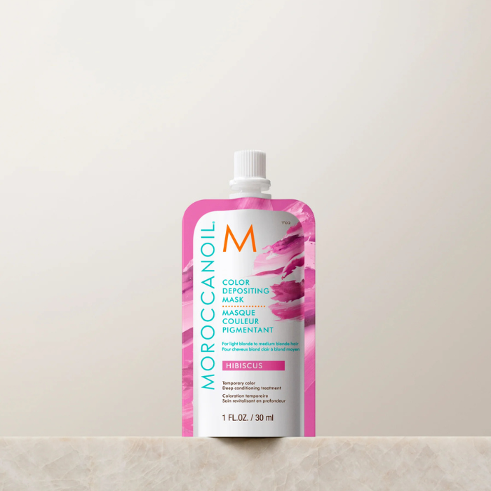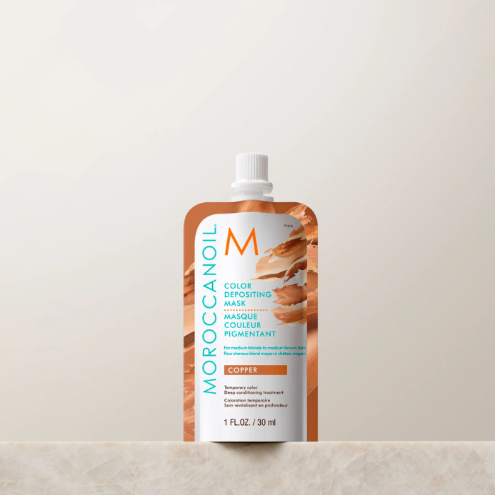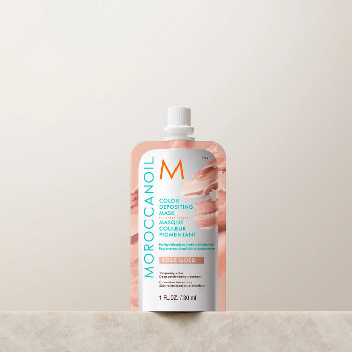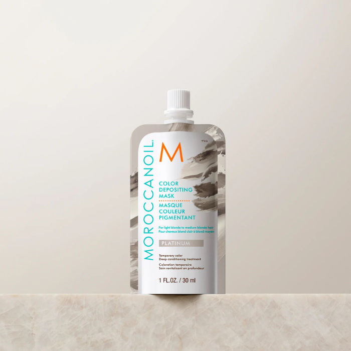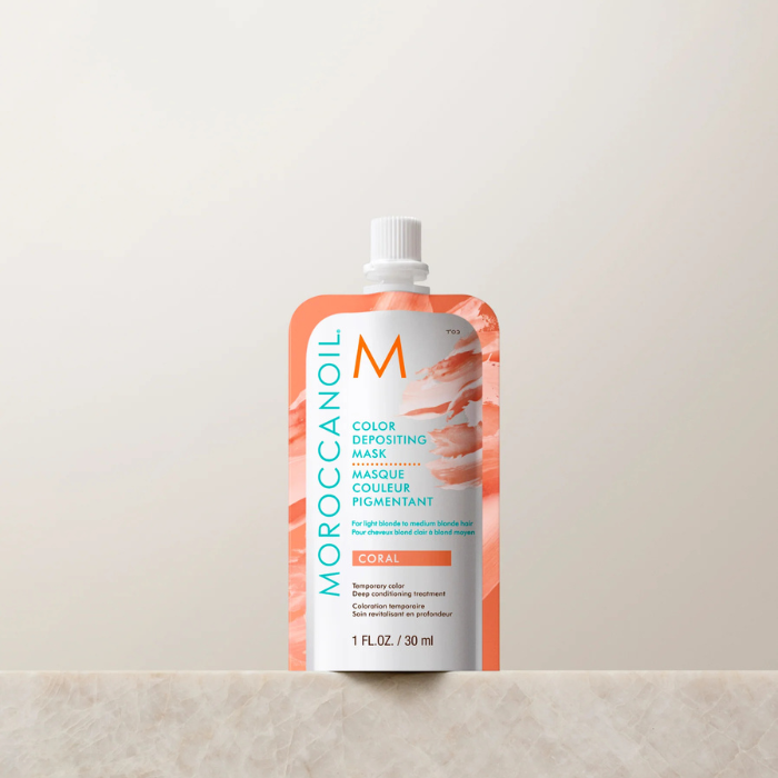 Note: Colour Depositing Masks add temporary colour that is designed to fade out gradually over time. The lighter the hair, the more vibrant and long-lasting the shade. Colour results and longevity also depend on hair porosity. To hit reset and expedite the colour washout process, visit a Moroccanoil salon and consult with your stylist.