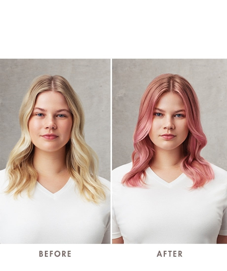 Before committing to a full head of colour, we recommend conducting a strand test first to assess the level of colour deposition. Start by choosing a small piece of hair to test, ideally one that’s mostly hidden when your hair is styled normally. Section off the strand and tie the rest out of the way. Apply Colour Depositing Mask on the strand and leave on 2–3 minutes. Rinse. If the colour is too subtle, try a second strand and leave on for longer.