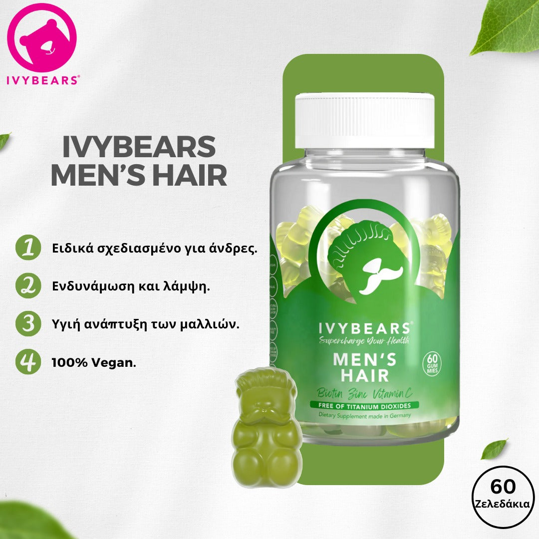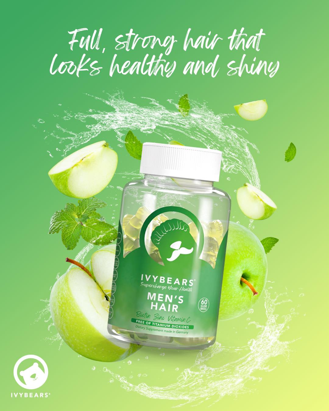 IVYBEARS Menโ€™s Hair are delicious gummie-bears for hair, which are scientifically prepared to improve menโ€™s hair. Full, strong hair that looks healthy and shiny โ€“ that is probably the wish of women and men alike. However, many men in particular start to notice their hair thinning and receding hairlines in their early 30s. There is a way to counteract thinning hair that not only contains valuable ingredients.
