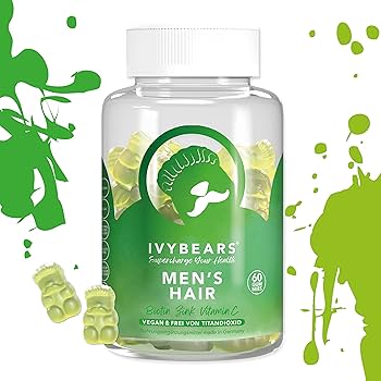 IVYBEARS Menโ€™s Hair contain high doses of biotin, folic acid and numerous vitamins necessary for the maintenance and growth of healthy hair. The density and suppleness of mens hair can be maintained in the long term thanks to the right supply of nutrients. By the way, the gummy bears also strengthen nails.