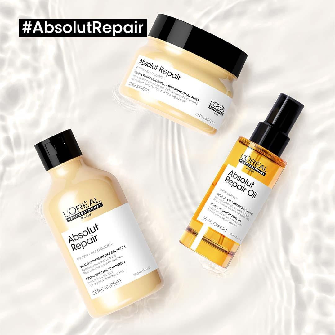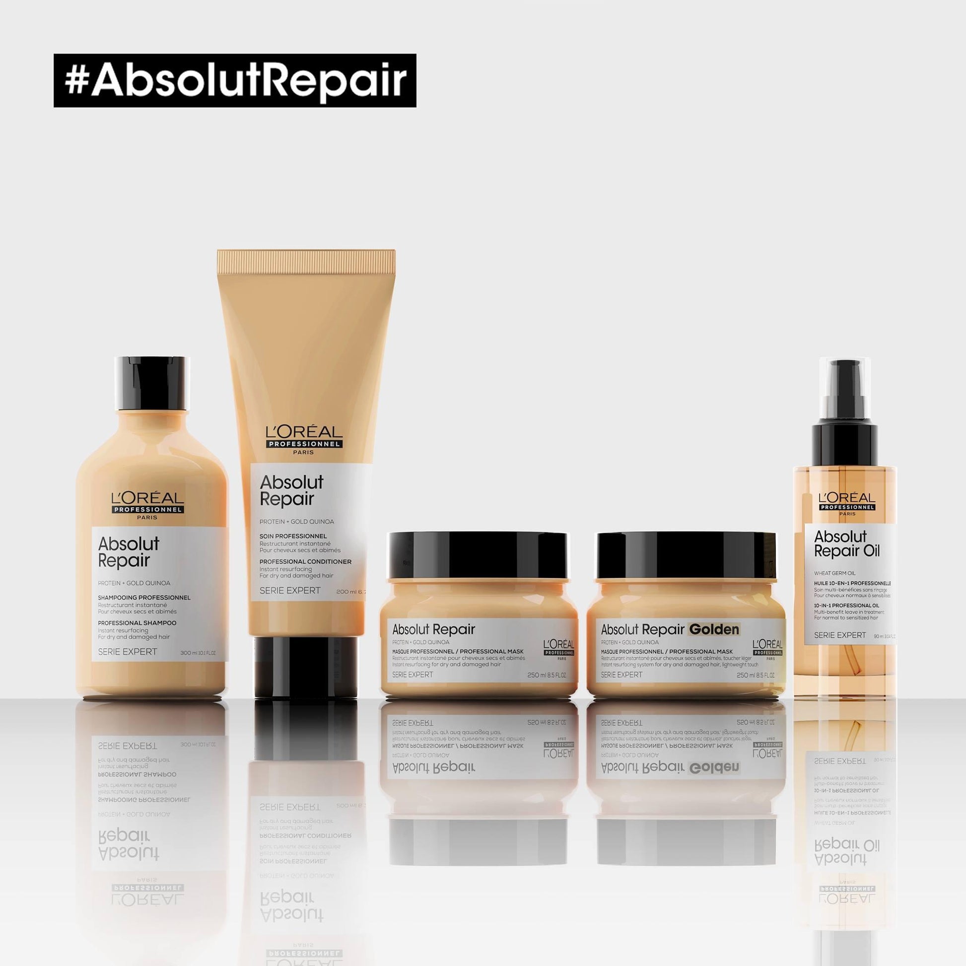 Combined with Absolut Repair Conditioner, Masque or Golden Masque, hair is left shinier and smoother.