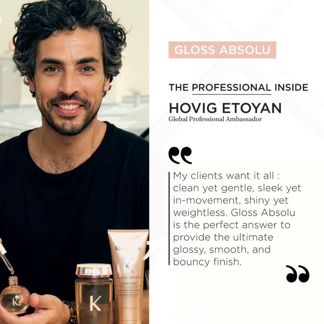 Kerastase Gloss Absolu Ritual is our new range dedicated to glossy, bouncy hair and anti-frizz. The Gloss Absolu Ritual is the perfect routine if you're looking for a healthy, long-lasting shine. It is specifically enriched with hyaluronic acid, glycolic acid and Wild Rose in Oil and delivers dreamy, bouncy, glossy hair.