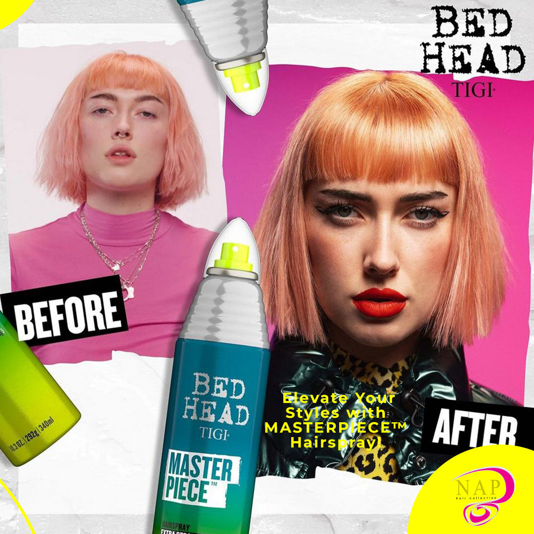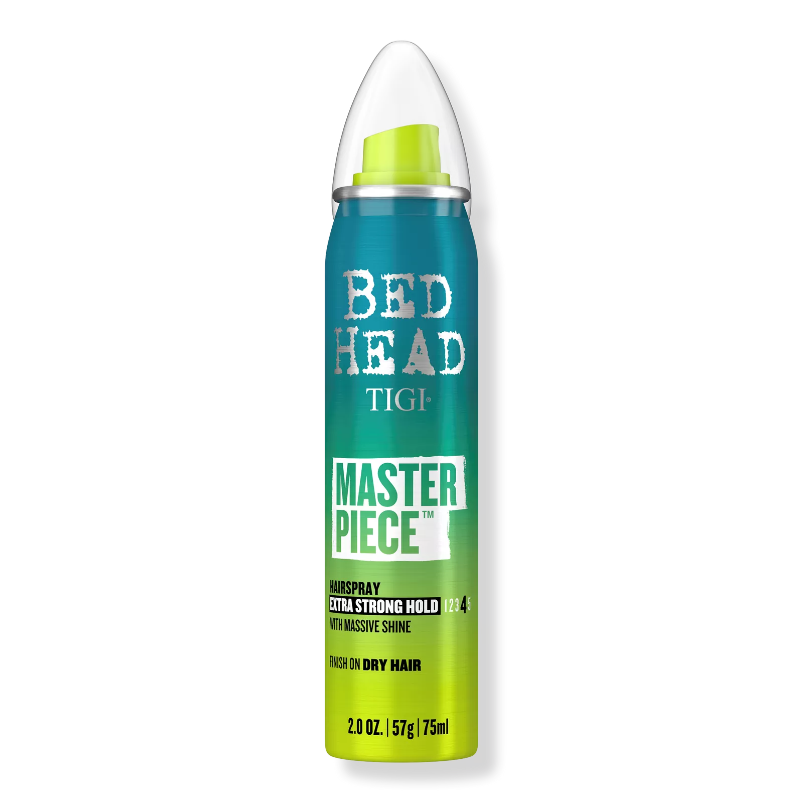 - A powerful shiny, strong hold formulation, not only designed with, but used by salon professionals. Delivering salon results and salon experience at home. With an extra strong hold and a shiny finish, the Bed Head Masterpiece Hairspray turns your hair into a work of art! This shiny hair spray adds gloss and shine for incredibly shiny hair.